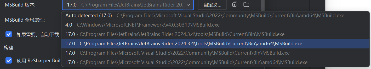 经过一番排除,我发现 Rider 使用了错误的 MSBuild。将其修改为 Rider 自带的 MSBuild,解决问题。